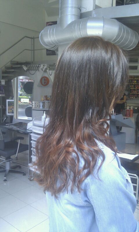 A Elena le hemos realizado un contraste en puntas marrón cobrizo haciendo que su melena tenga mas relieve.